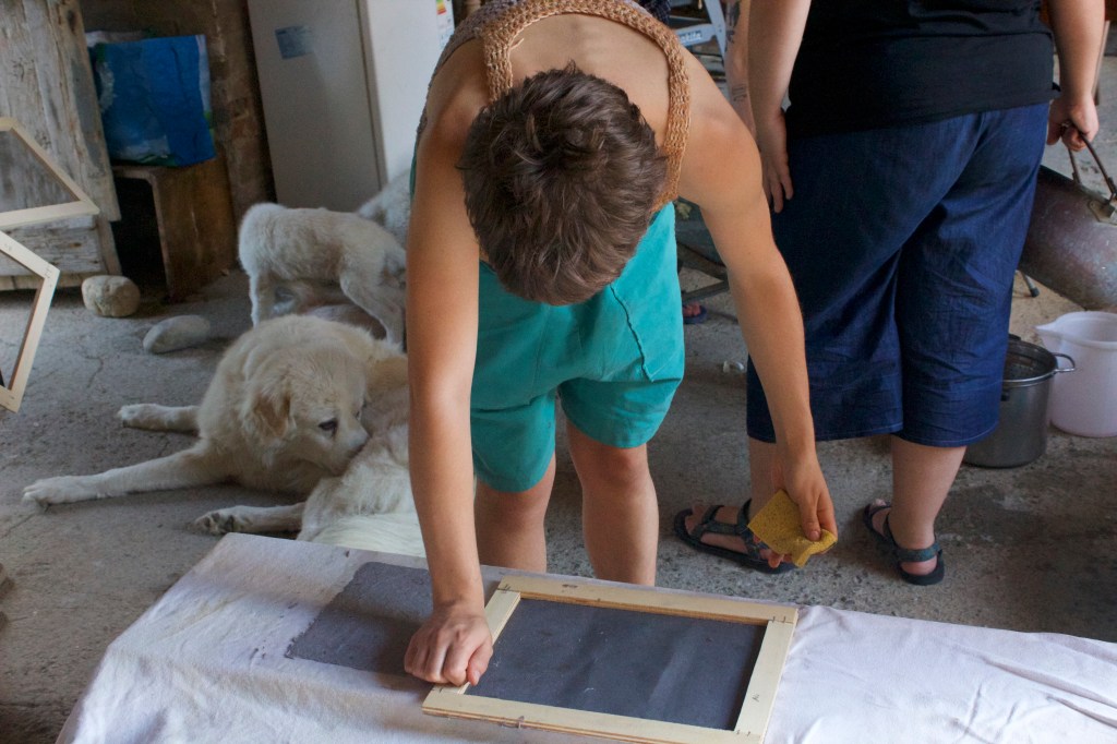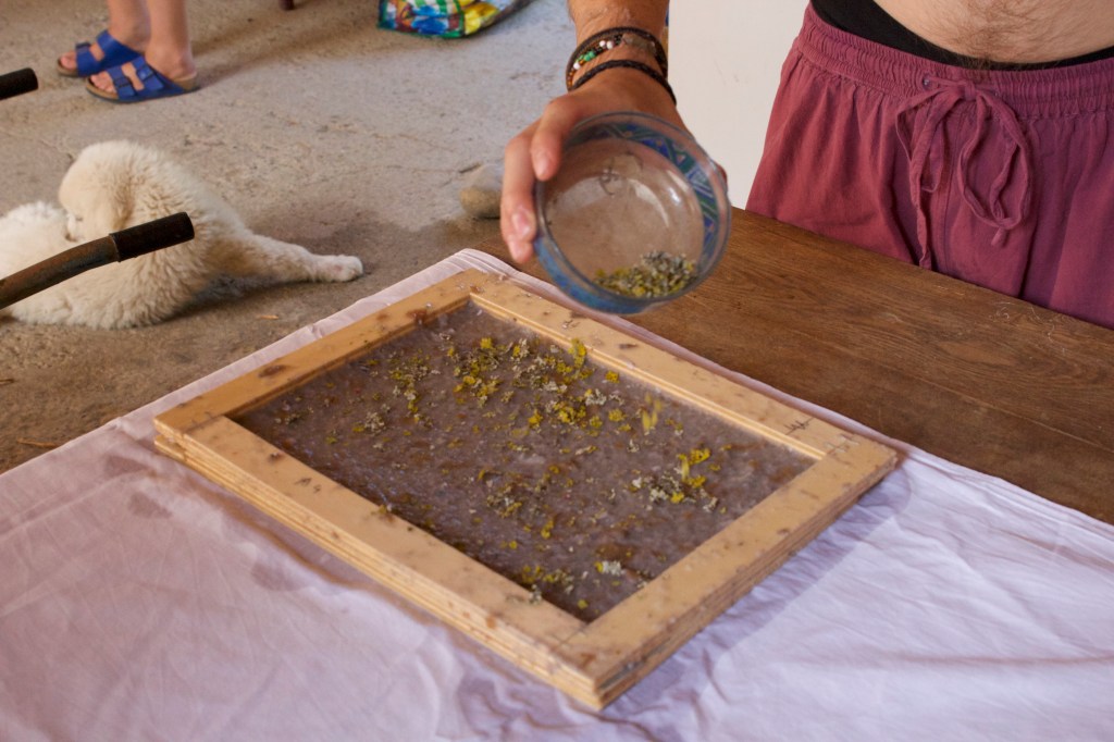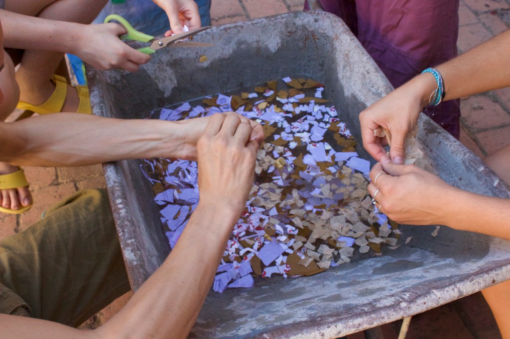 Both the fabrication and the usage of paper were at the center of this collaborative workshop. While learning how to make paper from old, recycled paper scraps, natural materials and decorations the group also collectively worked on producing the material for the analog archive of the project.