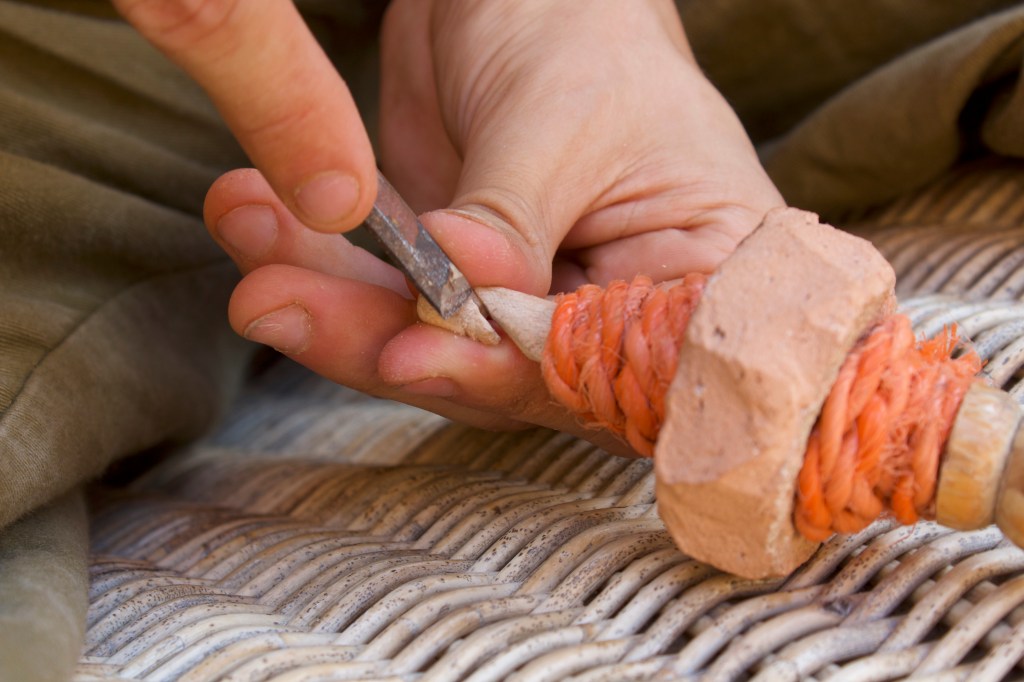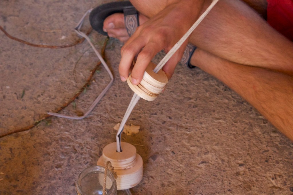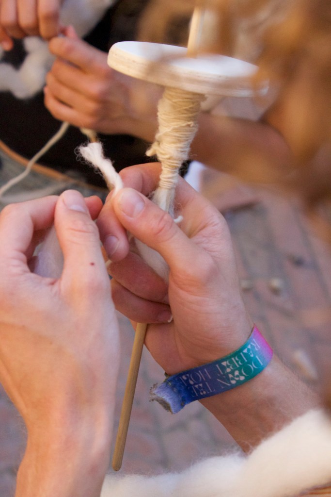 During this workshop, spindles and wool were discussed and explored. The group hand carved spindles out of reclaimed wood and learnt how to spin yarn out of rough wool. This resulted in practical artworks, and beautiful rustic yarn.