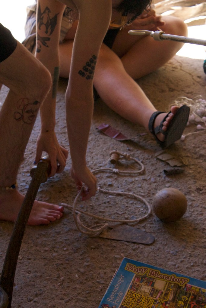 In this workshop we built something together: with each other, and with the place. We worked with found, used (!) materials, that we brought together in an explosion of DIY-technique and tactical thinking. The less one knew, the better! Letting go of having a goal, the group engaged in this constructive free-fall.