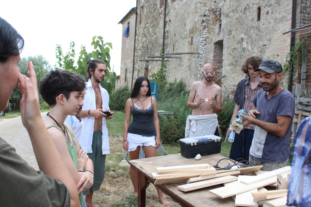 During this workshop, the participants created wooden signs to set around the farm’s most well-known spaces. The traces of that afternoon are still visible today in Calcinaia.