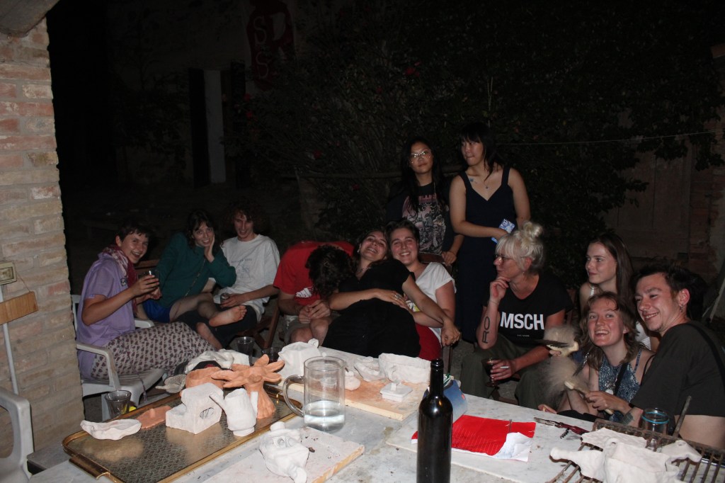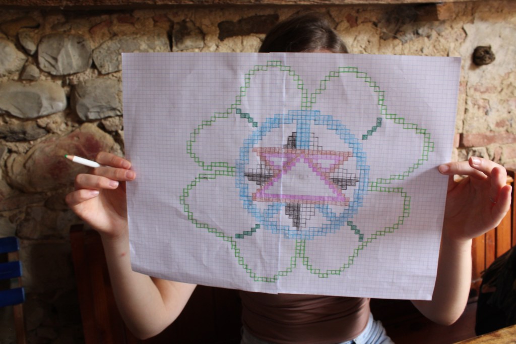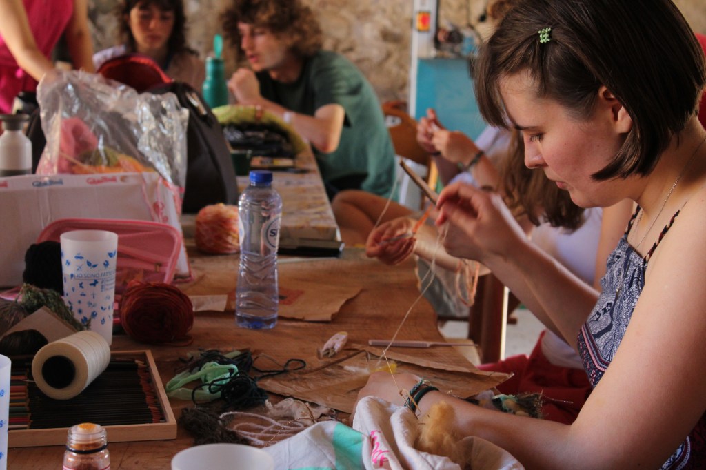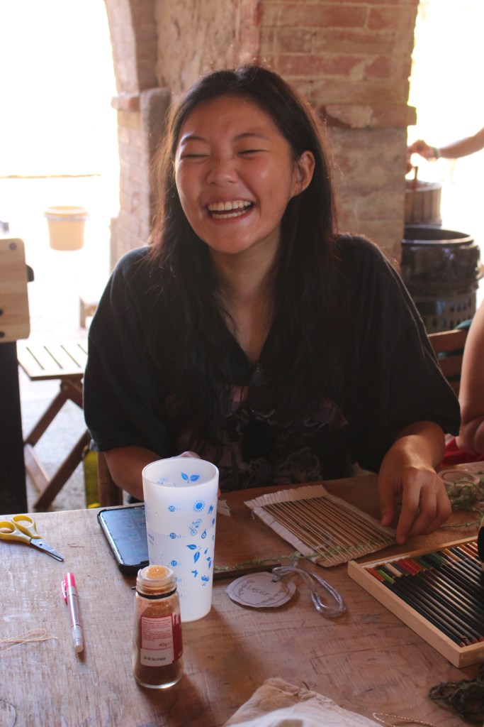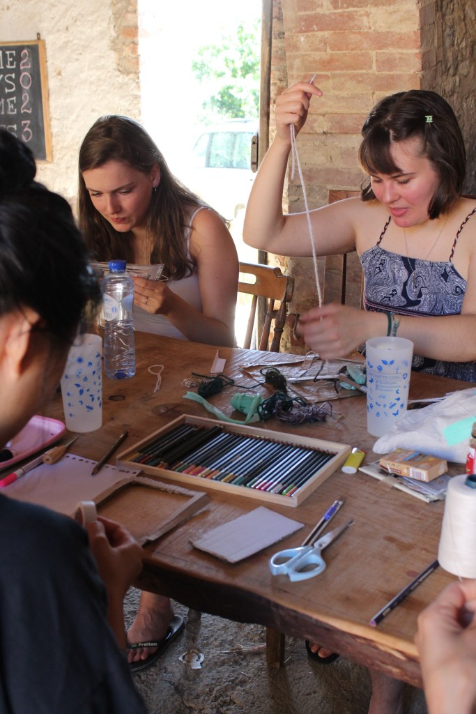 Bernd and Bianca’s workshop “Catching Stories” united personal stories, carpet making and community. The participants were led in creating symbols that related to their experience of Calcinaia and SDSA, and weaving them into a carpet. During the weaving, stories were exchanged, and stronger community ties were built.