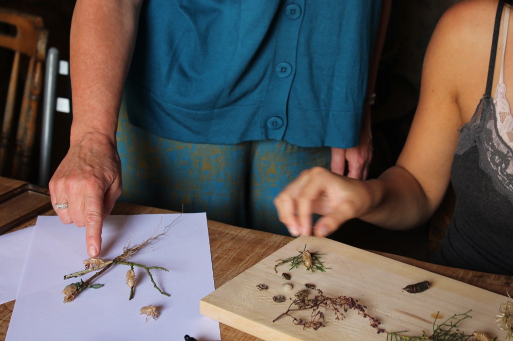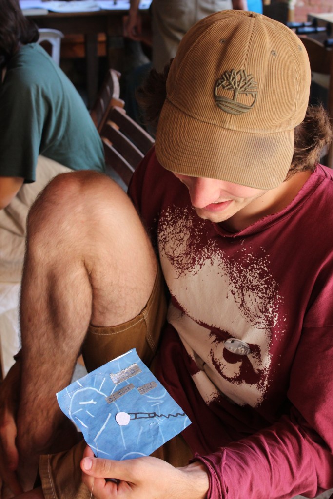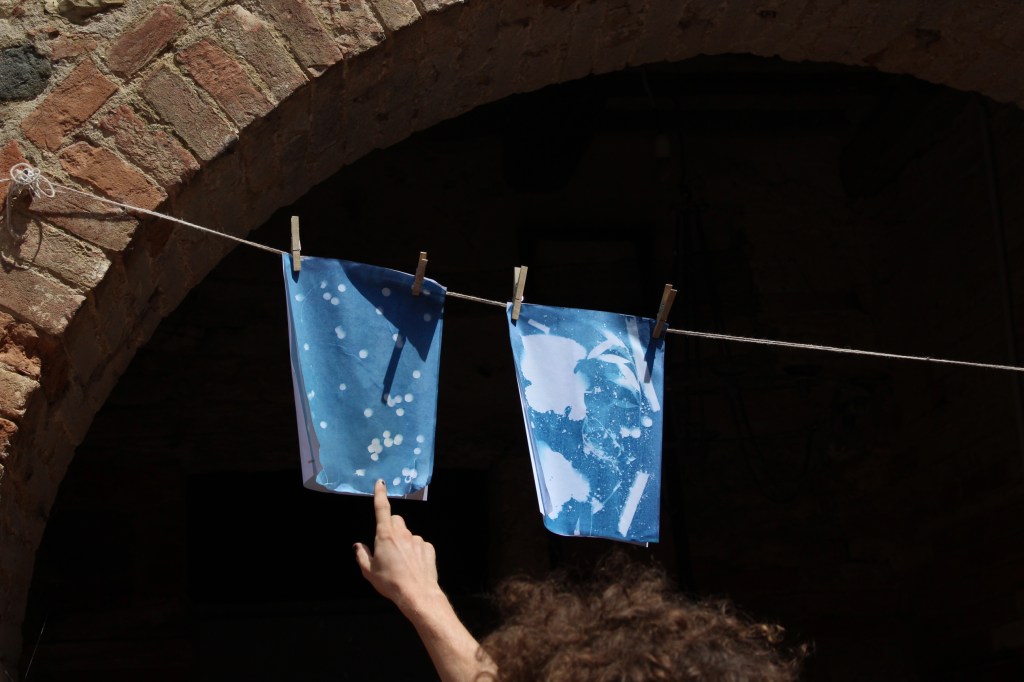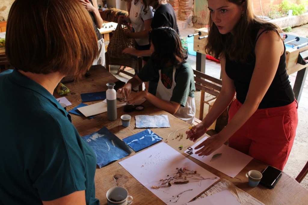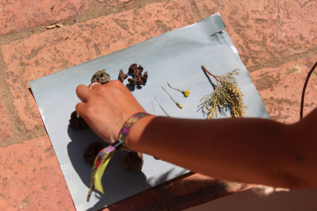 In their workshop, Patrick and Simone taught us how to use cyanotype prints as a medium to play with material that we found around the farm, using the sunlight to create “pictures” of ephemeral compositions.