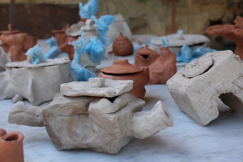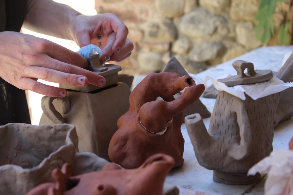 Thijme has a special interest in teapots, but what is a teapot? What is the history of teapots and can you make one yourself? This workshop provided answers, and brought up new questions. The result was a collection of unique and mystical handmade ceramic teapots, which the public could enjoy through a walk in one of the abandoned buildings on the farm.